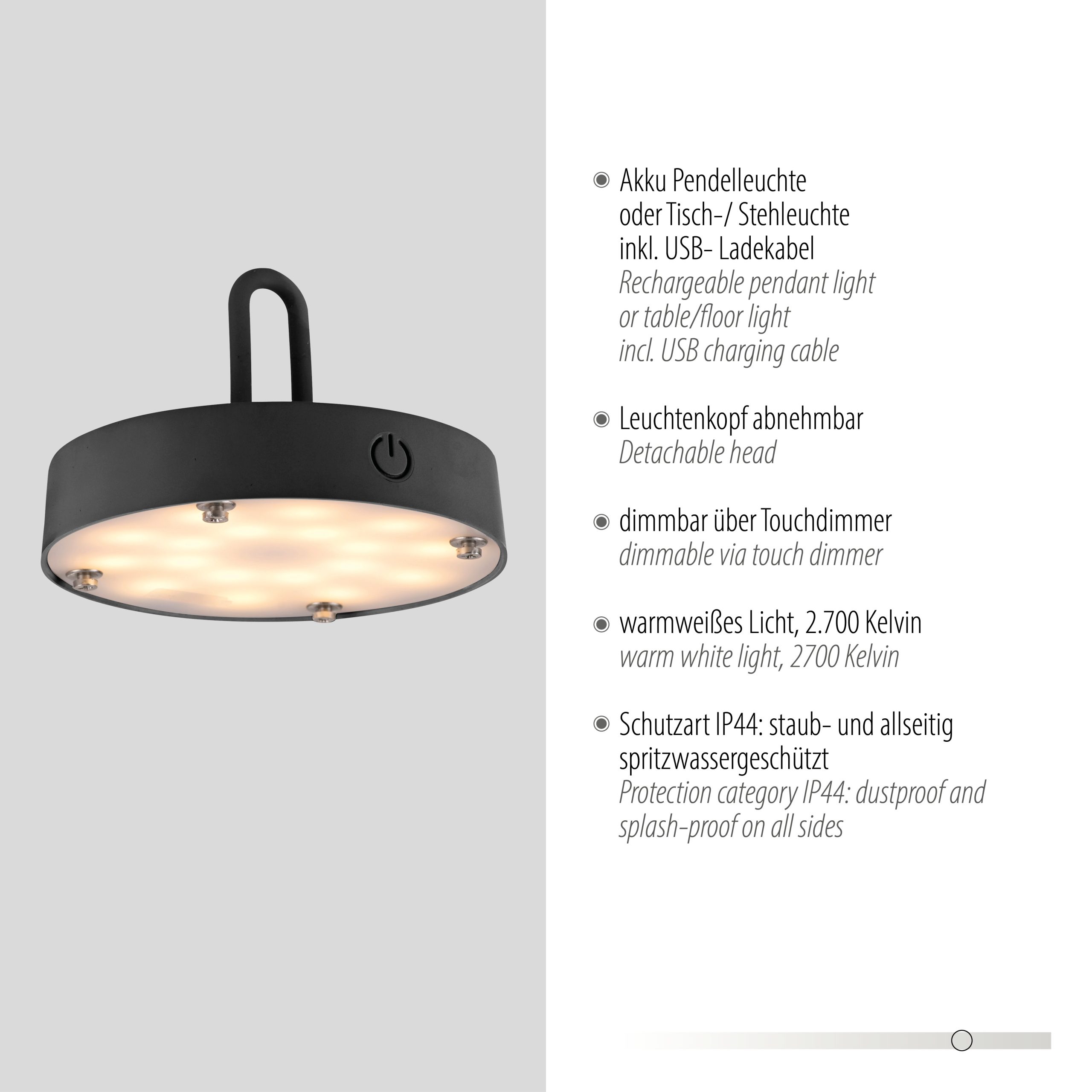 19304-18 AKUBA LAMPA STOŁOWA/ZEWNĘTRZNA BEZPRZEWODOWA CZARNY