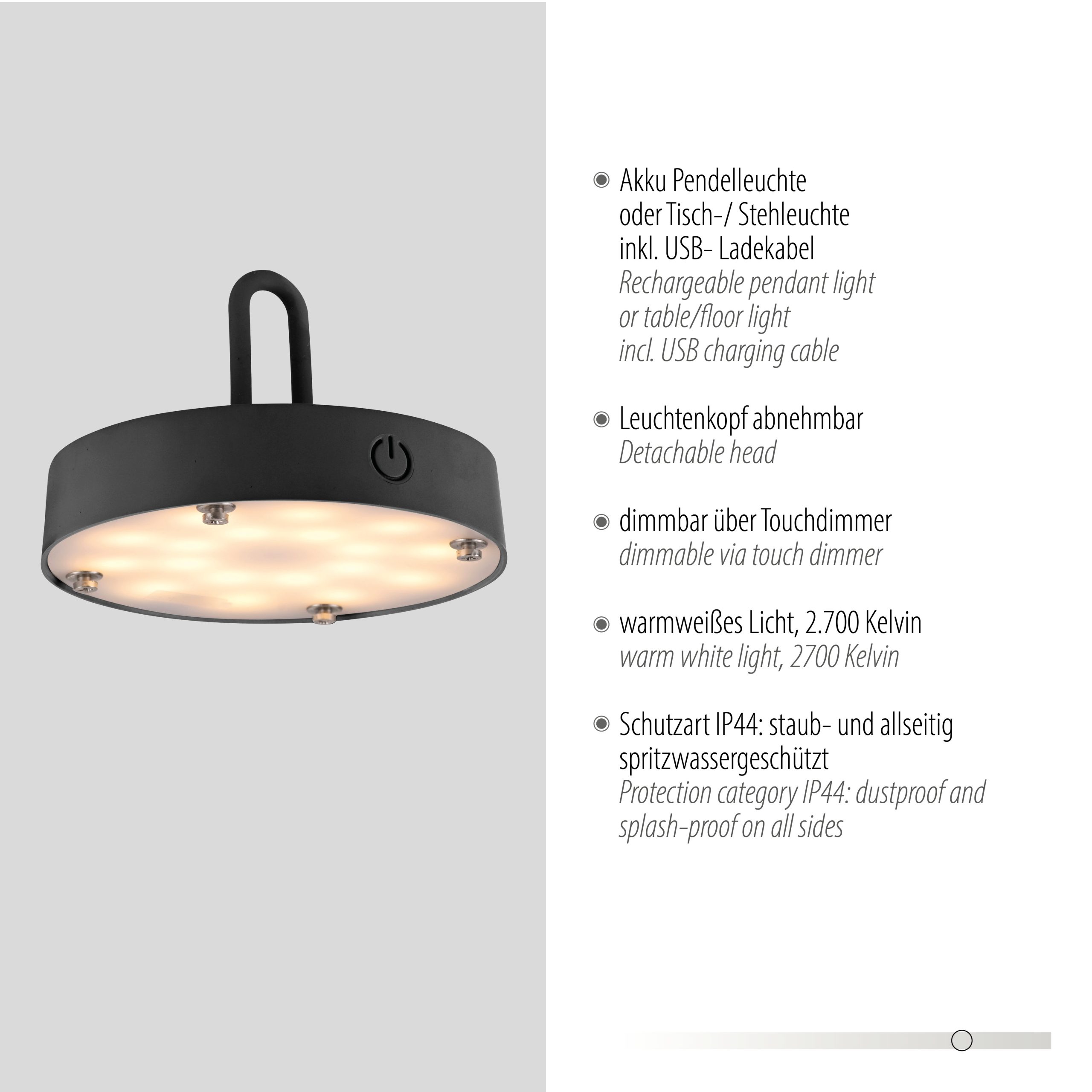 19305-40 AKUBA LAMPA STOŁOWA/ZEWNĘTRZNA BEZPRZEWODOWA SZARY