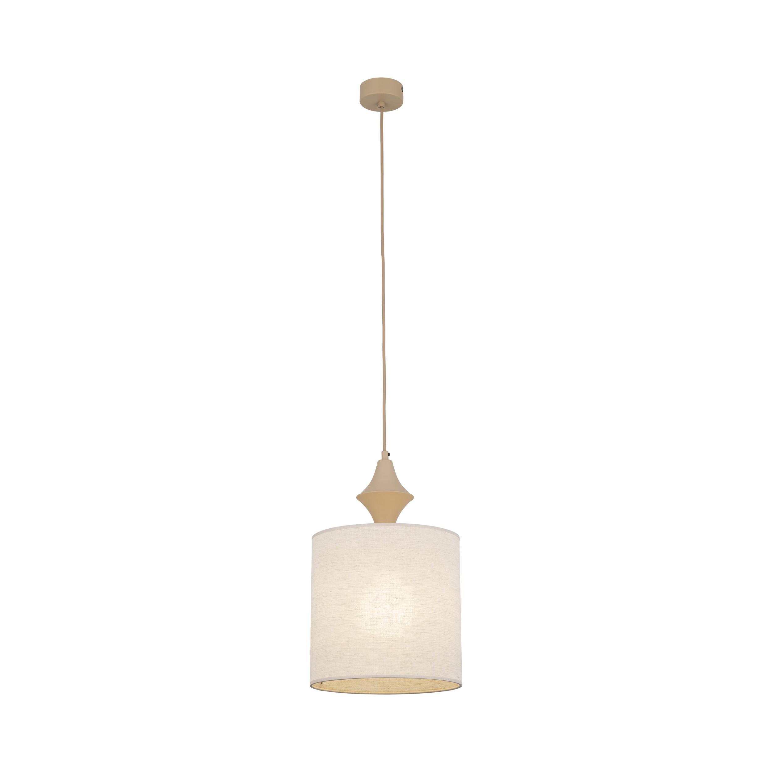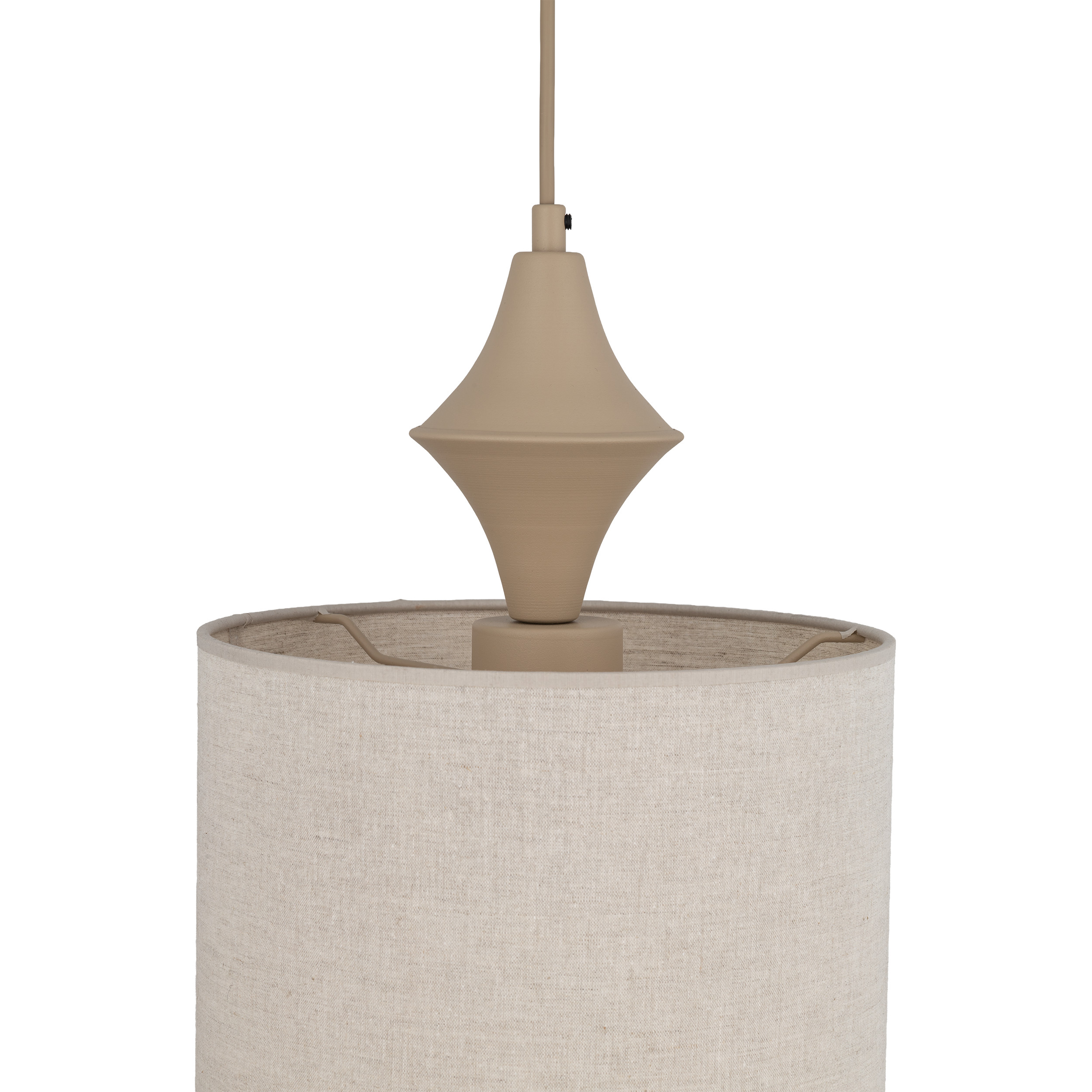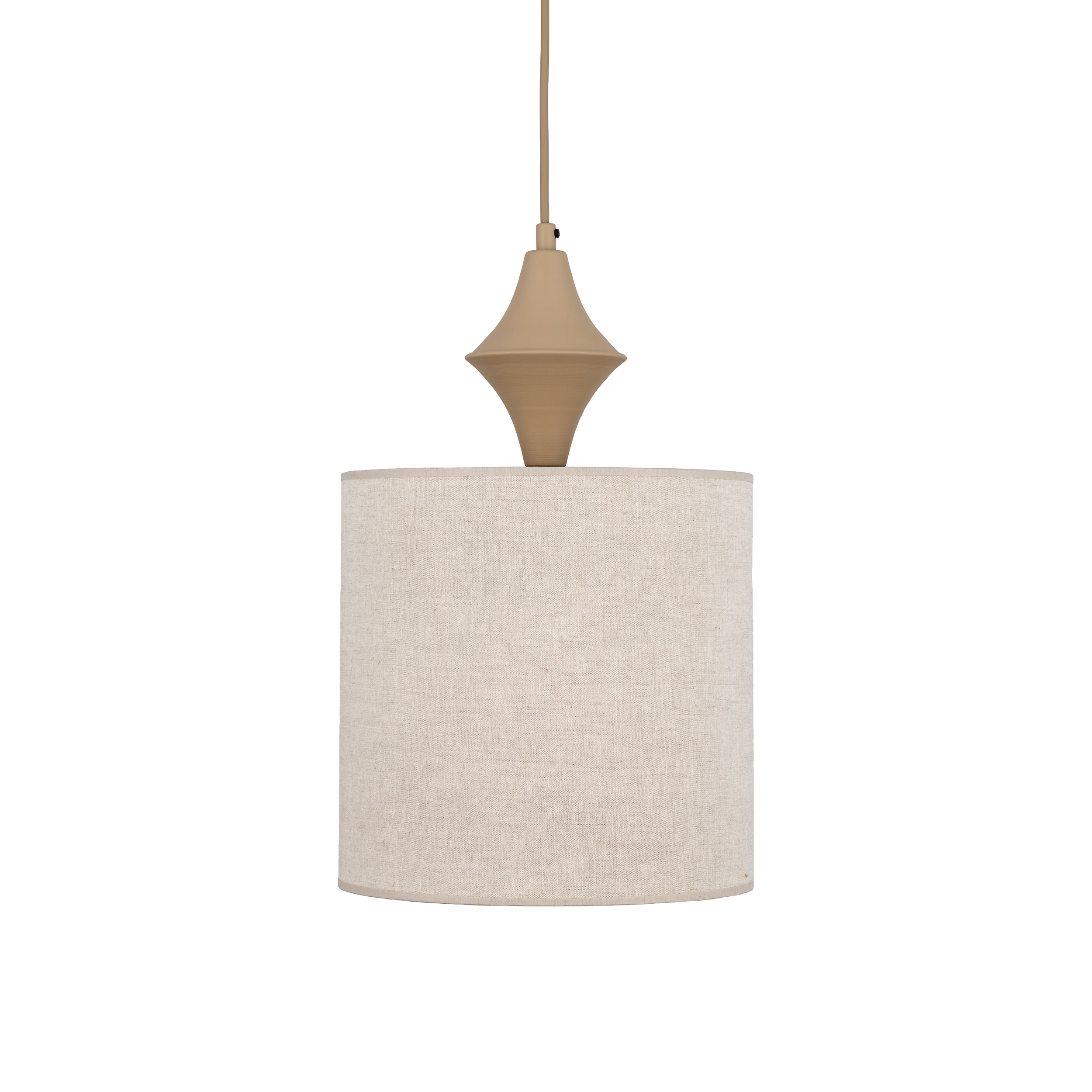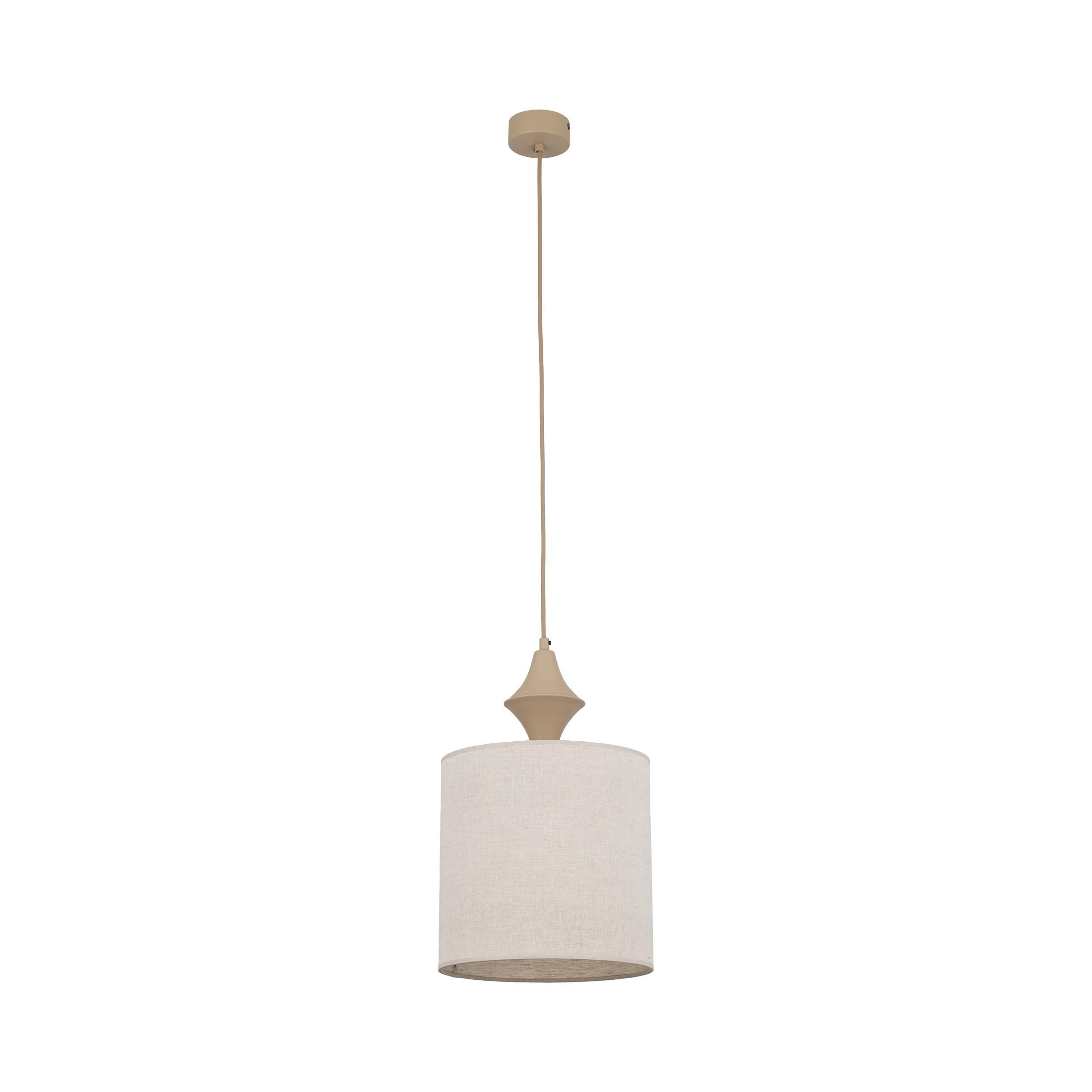 AMURA to rodzina minimalistycznych lamp wiszących, które łączą prostotę formy z subtelnym detalem. Cylindryczne abażury zawieszone są na smukłym przewodzie, a nad nimi znajduje się charakterystyczne zdobienie przypominające tralkę – niewielki, toczony element, który dodaje lampie lekko klasycznego, „meblowego” sznytu i sprawia, że oprawa wygląda jak dopracowany detal wyposażenia, a nie tylko źródło światła. Kolekcja dostępna jest w dwóch stonowanych wariantach kolorystycznych – Sabia, inspirowanej odcieniem piasku oraz New Brown, w cieplejszym, brązowym tonie.