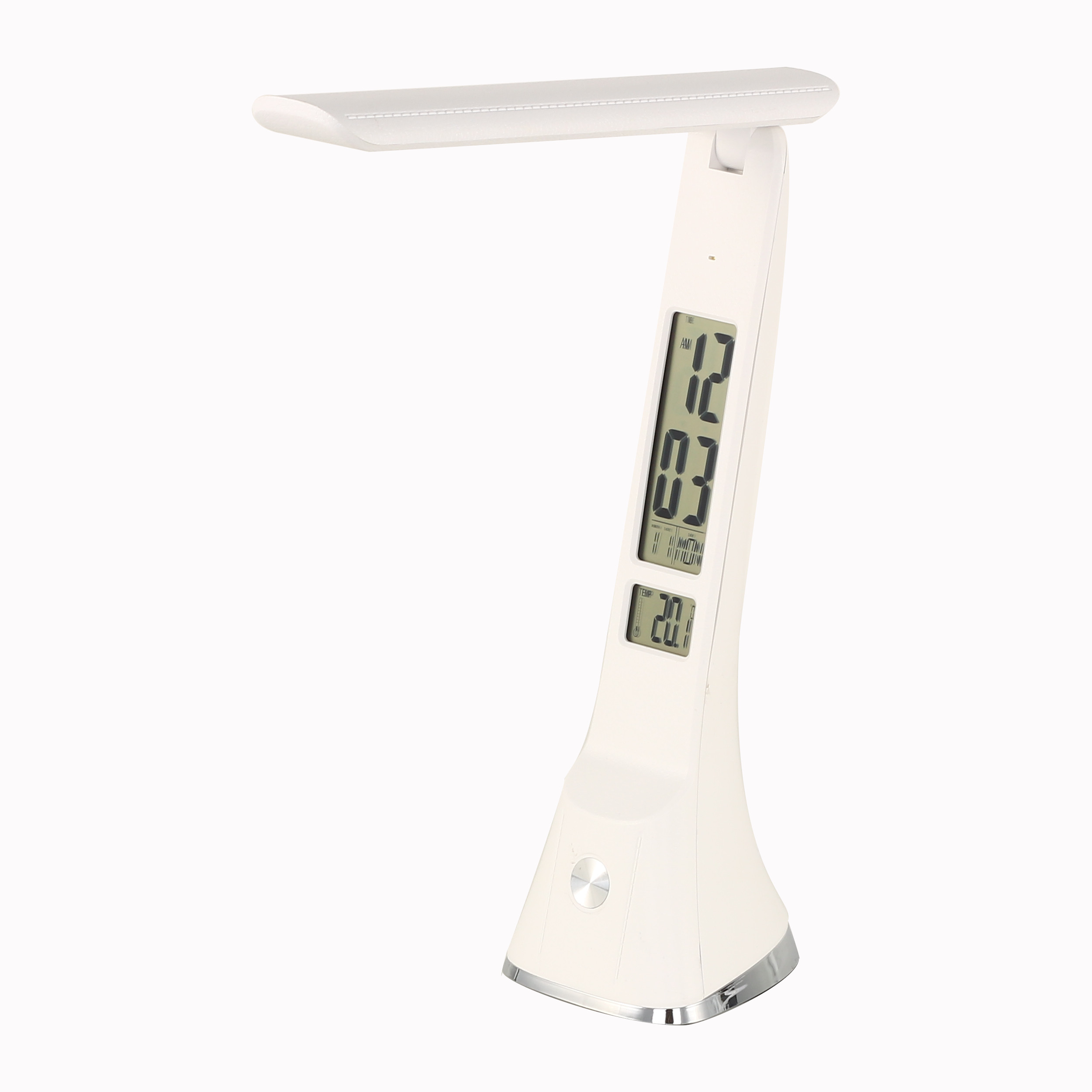 Lampa biurkowa CRUZ to praktyczne i wielofunkcyjne oświetlenie, idealne do pracy, nauki lub domowego biura. Jej nowoczesna forma łączy w sobie minimalistyczny design z szeregiem przydatnych funkcji, które podnoszą komfort codziennego użytkowania. Model CRUZ wyposażony jest w cyfrowy wyświetlacz LCD, który pokazuje godzinę, datę, dzień tygodnia oraz temperaturę otoczenia. Dzięki temu lampa staje się nie tylko źródłem światła, ale również praktycznym organizerem przestrzeni biurkowej. Dodatkowym atutem jest funkcja budzika, co czyni ją świetnym wyborem także do sypialni. Elastyczne ramię lampy umożliwia swobodne ustawienie kąta padania światła, a dotykowy panel pozwala na wygodną regulację natężenia. Lampa dostępna jest w dwóch wersjach kolorystycznych – klasycznej czerni i eleganckiej bieli – co pozwala dopasować ją do różnych stylów wnętrz.