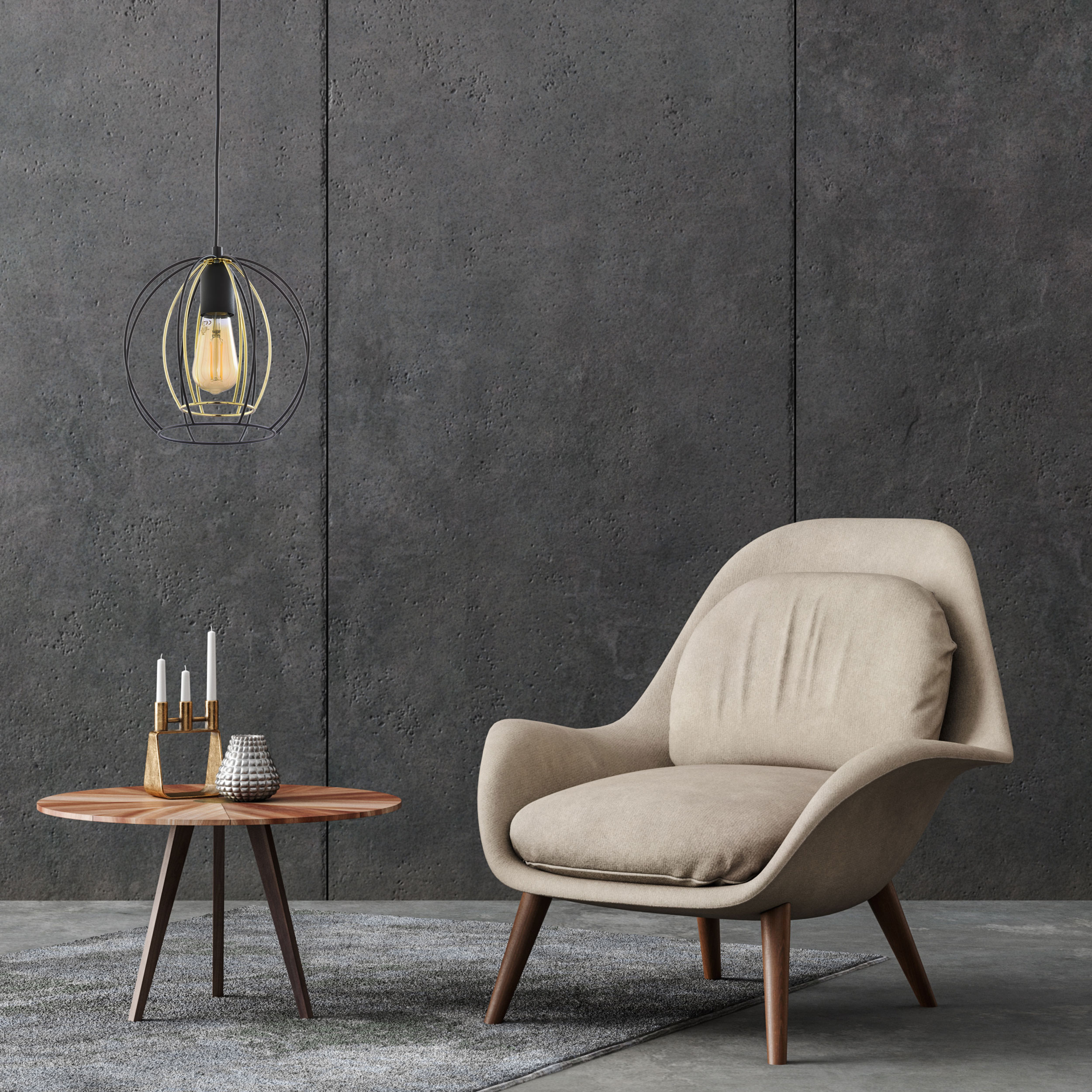 Jaula prezentuje surową konstrukcję czarno złotych kloszy powstałych z zaokrąglonych drutów o industrialnym charakterze. Dopełnienie stanowi ciepłe światło, uzyskane dzięki żarówce o bursztynowym zabarwieniu. Różnorodność wzorów tego modelu wpasuję się w każdą aranżację