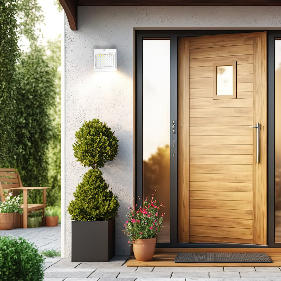 Oprawa solarna BUTTERFLY to nowoczesne, inteligentne i energooszczędne źródło światła o unikatowym wyglądzie. Lampa posiada dwa źródła światła, przednie i tylne. Dzięki panelowi słonecznemu umieszczonemu w górnej części lampki są w stanie przekształcić energię słoneczną w energię elektryczną, bez potrzeby korzystania z zewnętrznego zasilania lub kabla. Lampka jest wykonana z bezpiecznego oraz trwałego na uszkodzenia materiału. Lampki tego typu są wykorzystywane do oświetlenia zewnętrznego wszelakich wejść, chodników oraz podjazdów. Lampy z tej rodziny posiadają czujnik zmierzchowo-ruchowy i mają dwa tryby pracy. Po pierwszym naciśnięciu przycisku głównego lampa wchodzi w tryb A, kolejne naciśnięcie lampa przejdzie w tryb B, kolejne naciśnięcie spowoduje wyłączenie lampy. Zasięg czujnika ruchu: 120° <6m Tryb A - Gdy moc baterii jest większa niż 30%: Lampa automatycznie zapala się w nocy i zmienia się na pełną jasność po wykryciu ruchu w zasięgu <6m, następnie ściemnia się do niższej jasności (przednie światło tylne światło oba włączone) po 20 sekundach braku ruchu. Gdy poziom naładowania baterii jest mniejszy niż 30%: Lampa automatycznie zapala się w nocy i zmienia się no pełnej jasności, gdy wykryty zostanie ruch w zasięgu <6m, a następnie ściemnia się do niższej jasności (światło przednie wyłączone, tylko światło tylne włączone) po 20 sekundach braku ruchu. Tryb B - Lampa automatycznie zapala się o zmierzchu i pozostaje 50% jasności. Po 5 godzinach lub gdy moc baterii jest mniejsza niż 30%, przechodzi do trybu oszczędzania energii, lampa automatycznie włącza się do 50% jasności, gdy ruch jest wykrywany w zakresie <6m,a następnie ściemnia się do niższej jasności (przednie światło wyłączone, tylko tylne światło) po 20 sekundach bez ruchu.