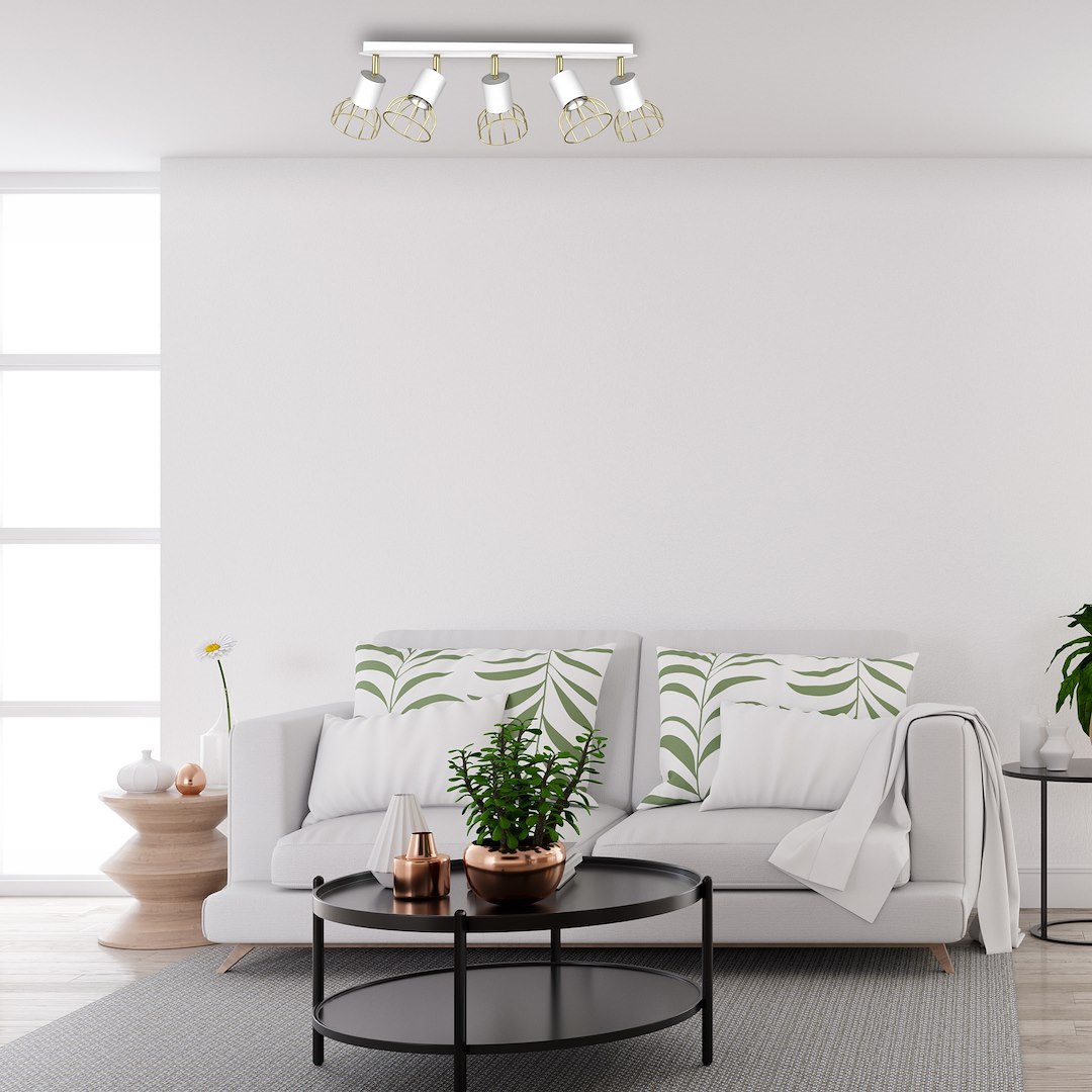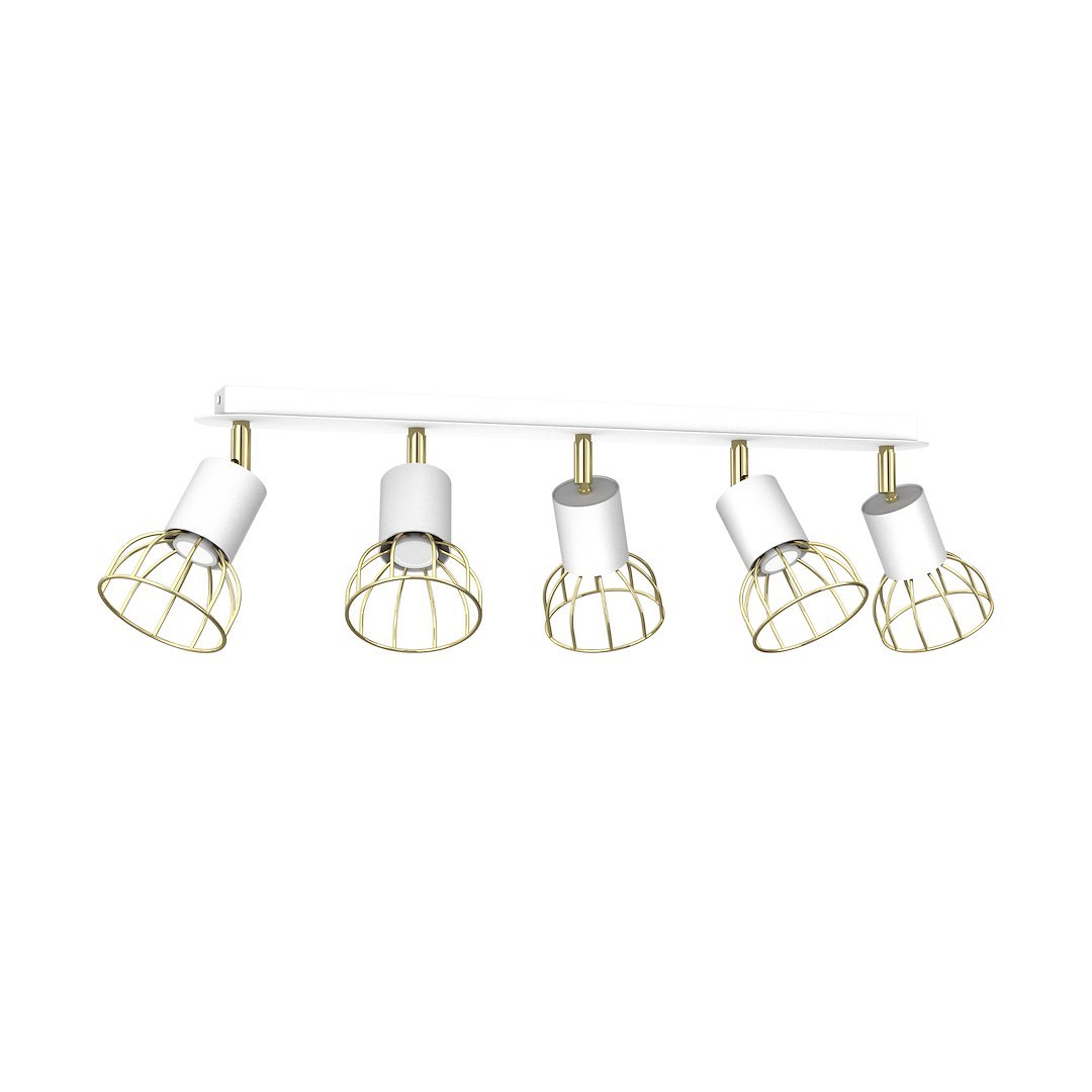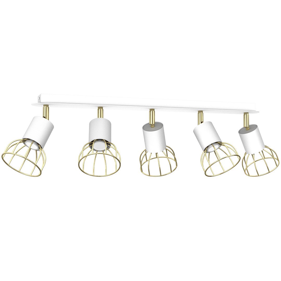 • Lampa sufitowa na prostokątnej listwie, pięcioelementowa, w kolorze srebrno-złotym MLP7253