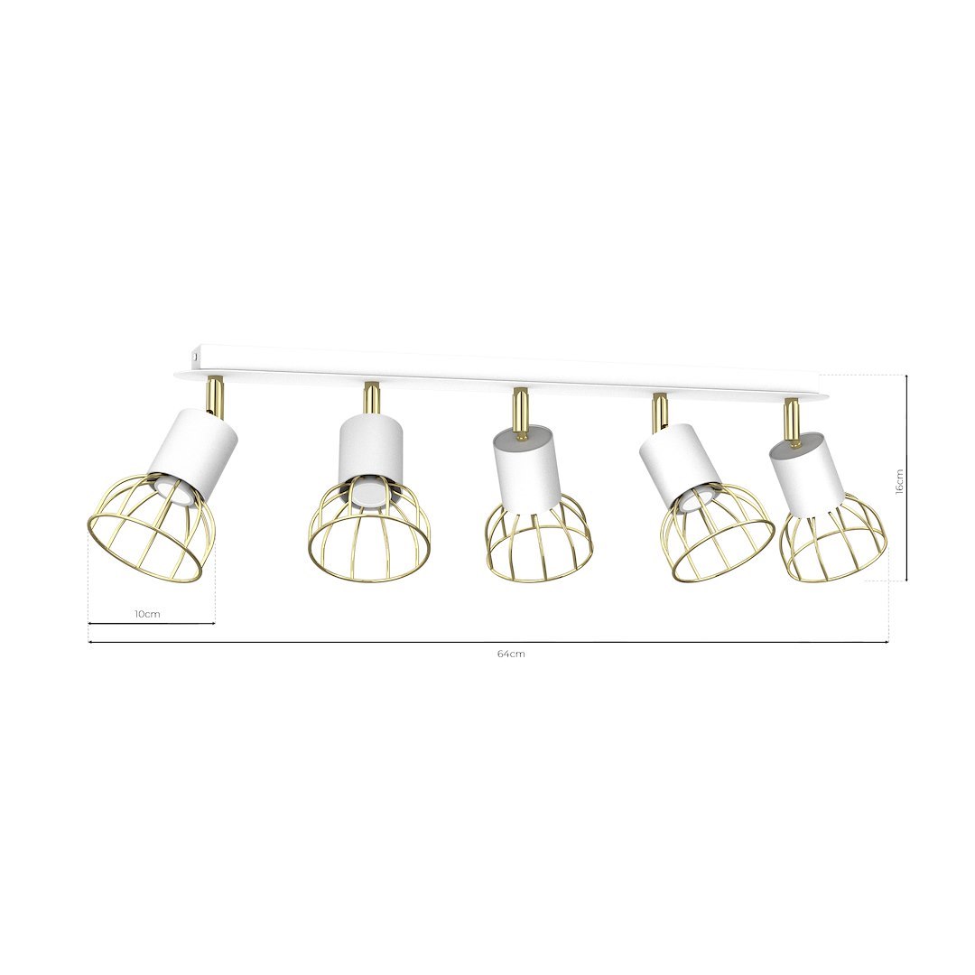 • Lampa sufitowa na prostokątnej listwie, pięcioelementowa, w kolorze czarno-złotym MLP7247