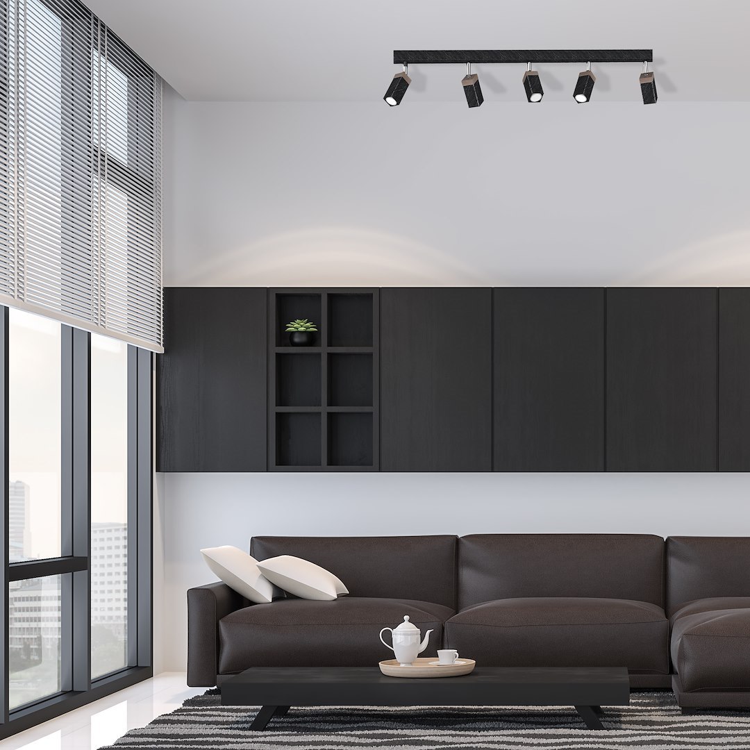 • Lampa sufitowa z 5 źródłami światła, w kolorze czarnym MLP7474