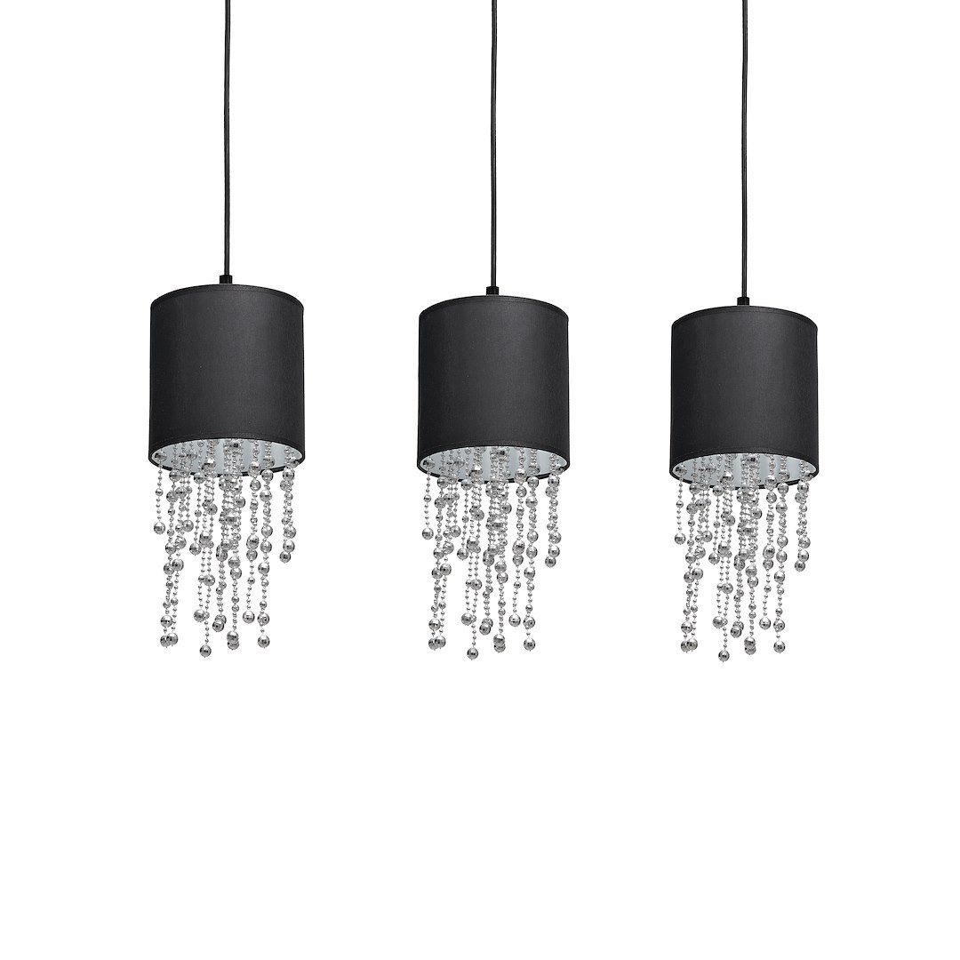 Modele z tej kolekcji charakteryzują się prostym, materiałowym kloszem w kształcie walca, jednak zwisające z jego wnętrza różnej długości sznury korali sprawiają, że całość prezentuje się niezwykle stylowo. Łańcuszki te mają jednak nie tylko walor estetyczny – dzięki nim światło efektownie się rozprasza i wprowadza w pomieszczeniu bardzo przytulny nastrój. Dodatkowym atutem lamp z tej kolekcji jest ogromna różnorodność kolorystyczna. Do wyboru są modele z kryształkami w kolorze złota i srebra, a klosze występują w barwie czarno-złotej, biało-złotej, butelkowej zieleni i srebra.