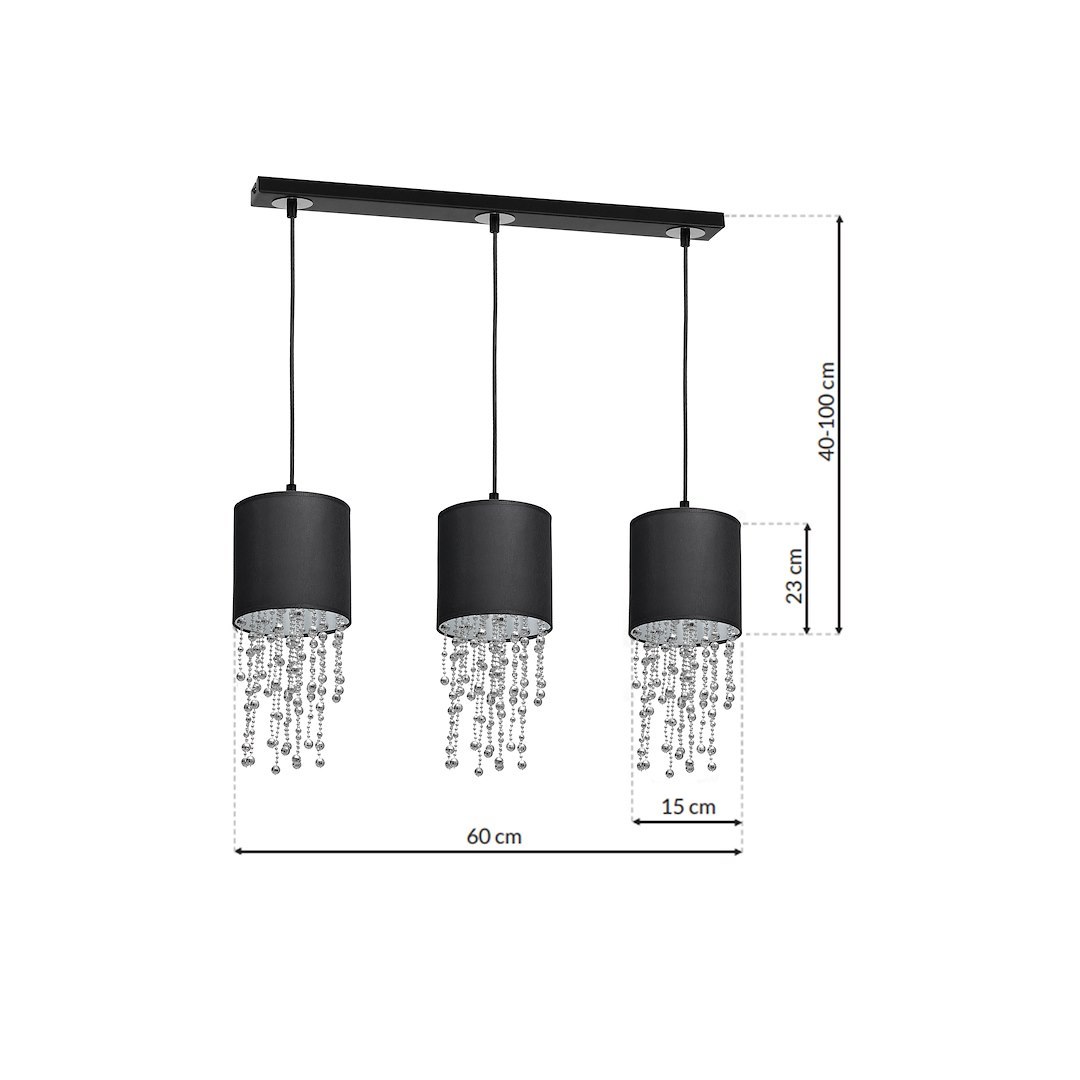 • Lampa sufitowa potrójna, szerokości 60, kloszami o średnicy 15 cm, czarny-chrom MLP64300