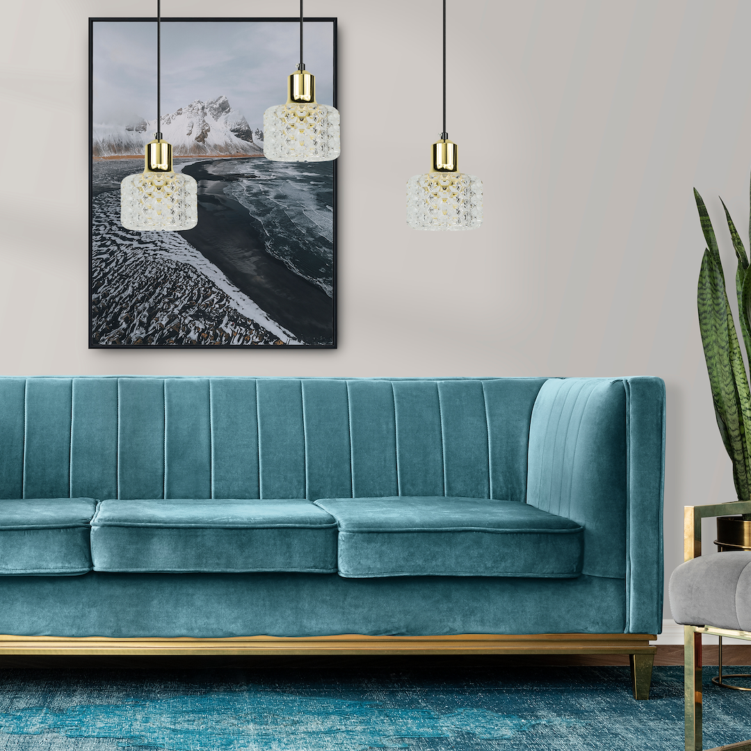 Odkryj kolekcję LUMI – lampy wiszące, które nadadzą Twoim wnętrzom niepowtarzalny urok! Jeśli szukasz oświetlenia, które połączy nowoczesny design z elegancją, kolekcja LUMI jest idealnym wyborem. Te piękne lampy wiszące zostały stworzone z wyjątkową dbałością o detale, aby zapewnić nie tylko doskonałe oświetlenie, ale także estetyczny element dekoracyjny. Każda lampa z kolekcji LUMI posiada akrylowy klosz imitujący kryształ, który nadaje im wyjątkowego uroku i elegancji. Gdy światło przenika przez ten klosz, tworzy subtelne refleksy, tworząc magiczną atmosferę w pomieszczeniu. Wykończenie lamp LUMI jest równie imponujące. Dostępne są w czarnym kolorze z elementami złota, co nadaje im nowoczesny i luksusowy wygląd. Wykończenie złoto i czarny mat doskonale komponują się ze sobą, tworząc kontrastowe połączenie, które przyciąga uwagę i dodaje elegancji każdemu wnętrzu. Lampy LUMI świetnie pasują do różnych pomieszczeń. Możesz umieścić je w salonie, aby podkreślić centralną część przestrzeni. Nad wyspą kuchenną dodadzą stylu i funkcjonalności, natomiast w sypialni mogą być umieszczone po obu stronach łóżka, tworząc przytulne i romantyczne otoczenie. Są także idealne nad stolikiem kawowym, dodając wyjątkowego blasku do przestrzeni wypoczynkowej. Lampy LUMI są nie tylko piękne, ale także praktyczne. Posiadają wymienne źródło światła, co daje Ci elastyczność w dostosowaniu intensywności oświetlenia do swoich preferencji i potrzeb. Odkryj kolekcję LUMI i dodaj swoim wnętrzom wyjątkowy design, elegancję i funkcjonalność. Te lampy wiszące, wykonane z metalu i akrylu, będą doskonałym wyborem dla tych, którzy cenią sobie wysoką jakość i unikalny styl. Wybierz lampy LUMI i stwórz przestrzeń, w której czern i złoto będą królować, nadając Twoim wnętrzom wyjątkowy charakter i atmosferę.