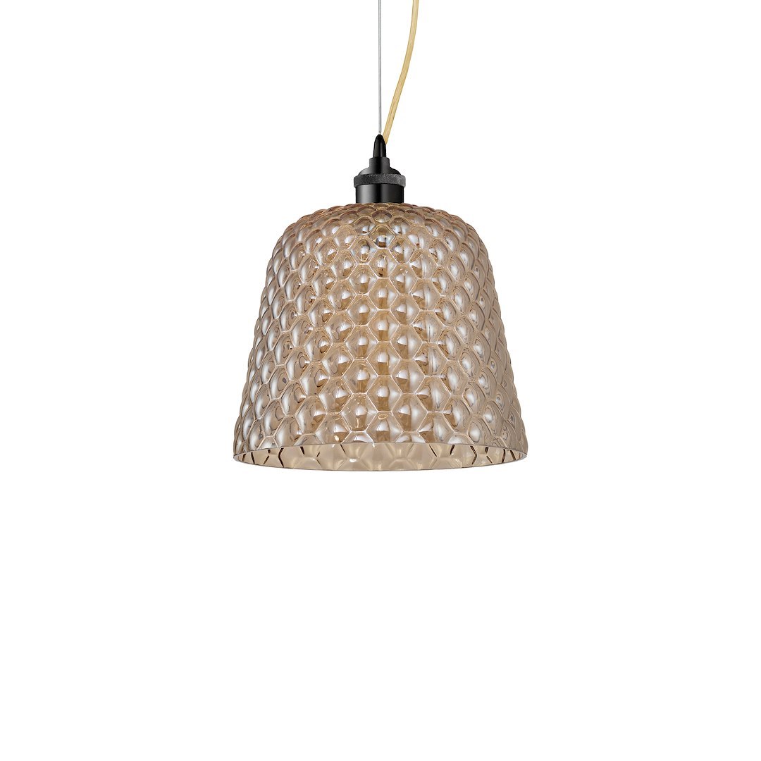 Kolekcja RIO to cztery stylowe lampy wiszące z jednym punktem świetlnym. Do każdej znich zastosować można żarówki LED, które wyróżniają się dużą trwałością na tle innych żarówek. Klosze tej serii mają zaokrąglony kształt z widocznymi, ozdobnymi wytłoczeniami. Dodatkowo, każda z lamp ma charakterystyczne, pofalowane zawiesie, które tworzy wraz z kloszem spójną całość. Produkty wykonano ze szlachetnego metalu oraz szkła. Bogata gama kolorystyczna zawiera aż cztery kolory lamp: czarny, chrom, miedziany i matowy złoty. Każdy model ma także możliwość regulacji wysokości. Nietuzinkowy design lamp idealnie pasuje do wnętrz klasycznych lub utrzymanych w stylu glamour.