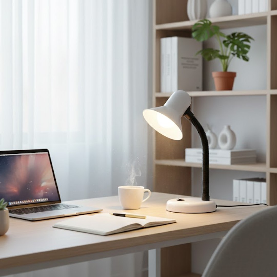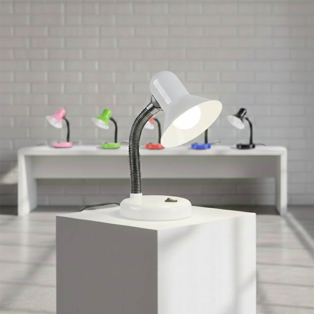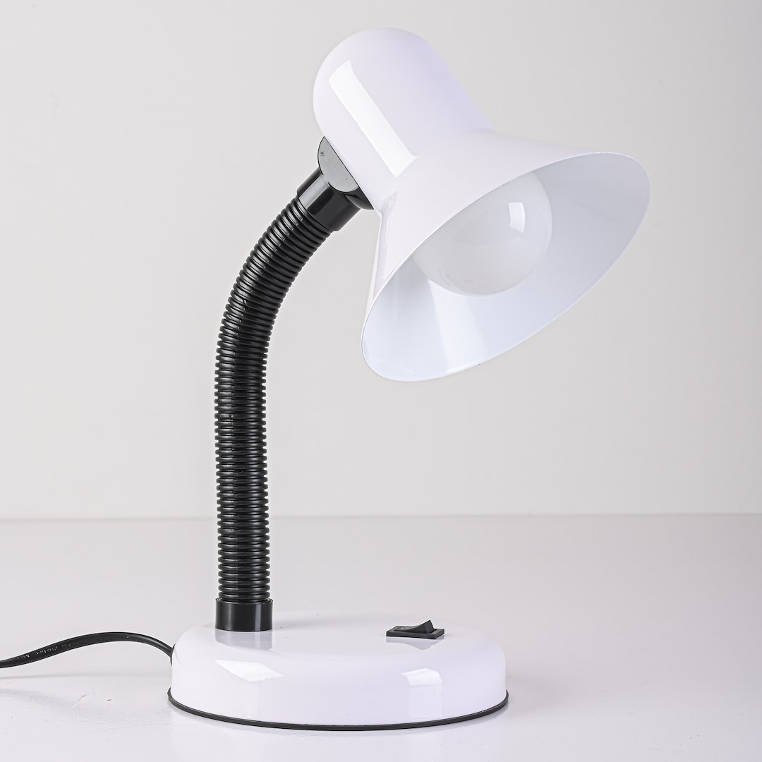 Lampka biurkowa Mentor w białym wykończeniu to uniwersalne rozwiązanie do pracy i nauki. Prosta forma oraz jasna kolorystyka sprawiają, że doskonale komponuje się z nowoczesnym biurkiem, młodzieżowym pokojem lub minimalistycznym gabinetem.