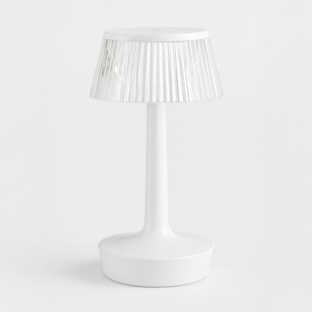 EASY Biały to elegancka i nowoczesna lampka nocna, która łączy prostą, subtelną formę z efektownym kloszem o strukturze przypominającej szlifowane szkło. Jej biała, połyskująca podstawa oraz przezroczysty klosz doskonale odbijają światło, tworząc przytulną i wyrafinowaną atmosferę. Dzięki wbudowanemu akumulatorowi oraz ładowaniu przez USB-C lampka działa całkowicie bezprzewodowo. Dotykowy włącznik zapewnia wygodną obsługę, a niewielkie wymiary czynią ją idealnym dodatkiem do stolików nocnych, kawiarnianych blatów czy recepcji hotelowych.