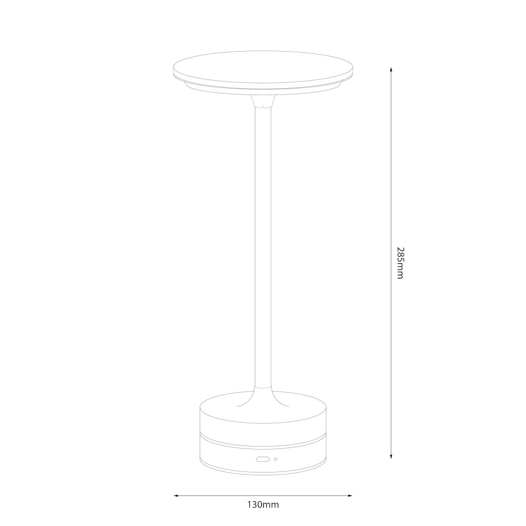 TAVOLO Black to elegancka i uniwersalna lampka nocna o czystej, geometrycznej formie. Czarny matowy korpus w połączeniu z białym spodem klosza tworzy nowoczesny kontrast, który doskonale wpasowuje się w wnętrza restauracyjne, hotelowe oraz przestrzenie w stylu industrialnym, minimalistycznym czy loft. Lampa posiada zintegrowane źródło światła LED i działa bezprzewodowo – na wbudowanym akumulatorze ładowanym przez USB. Prosta forma z szerokim, płaskim kloszem zapewnia równomierne rozproszenie światła, a dotykowy włącznik umożliwia szybkie i wygodne sterowanie. Idealna na stoliki kawowe, recepcje, tarasy lub jako delikatne światło wieczorne w domowych wnętrzach.