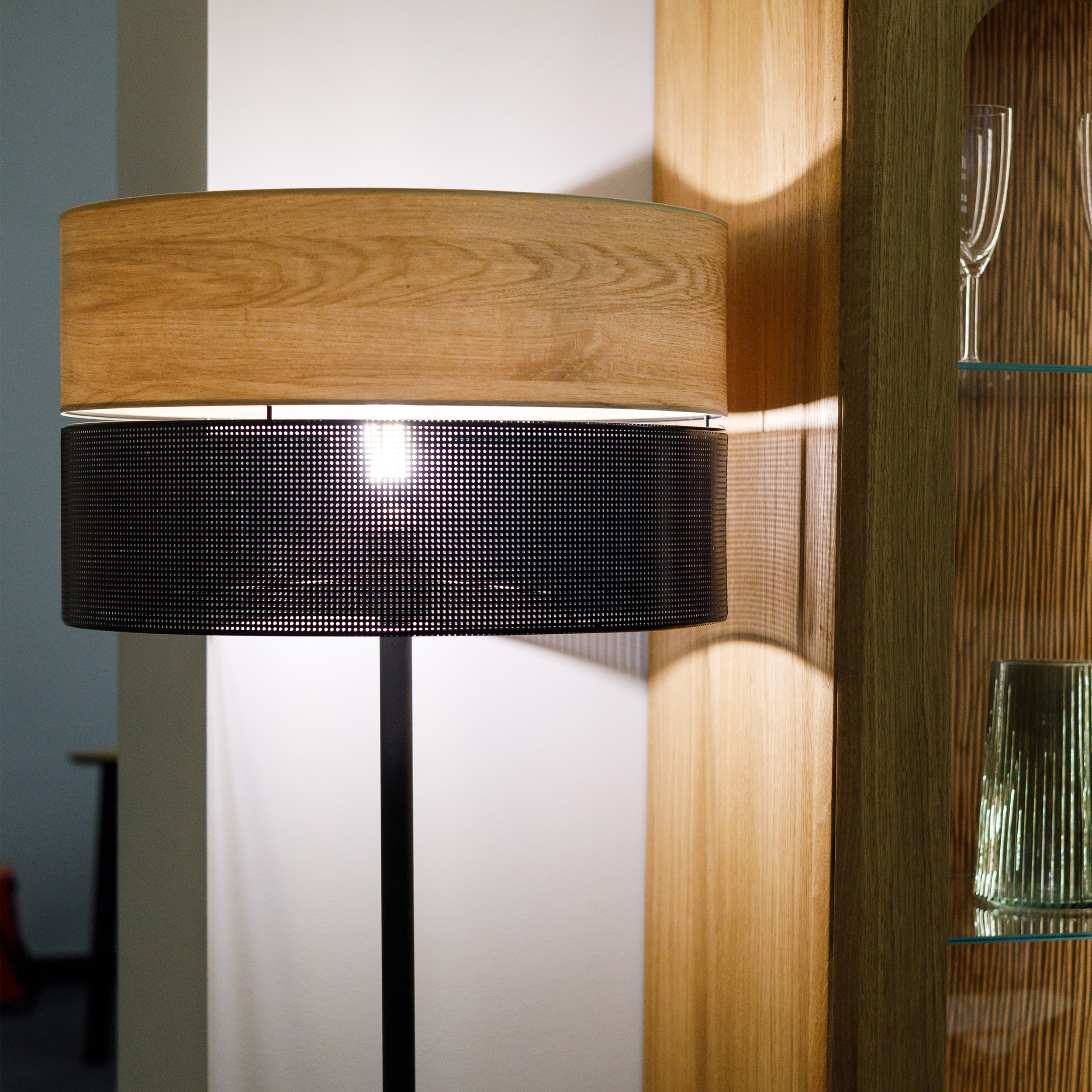 Wszystkie lampy z kolekcji są kompatybilne z żarówkami z gwintem E27, co daje wiele możliwości doboru żarówki. Czarne metalowe stelaże dodają eleganckiego i nowoczesnego charakteru, a abażury wykonane są z forniru modyfikowanego i czarnej folii PVC z perforacjami, które tworzą niepowtarzalny i ciekawy wizualnie wzór.   Kolekcja Nicol to pięknie wykonany zestaw opcji oświetlenia, które płynnie łączy  styl i funkcjonalność. Niezależnie od tego, czy szukasz wyrazistego elementu, czy subtelnego rozwiązania oświetleniowego, w tej kolekcji każdy znajdzie coś dla siebie.
