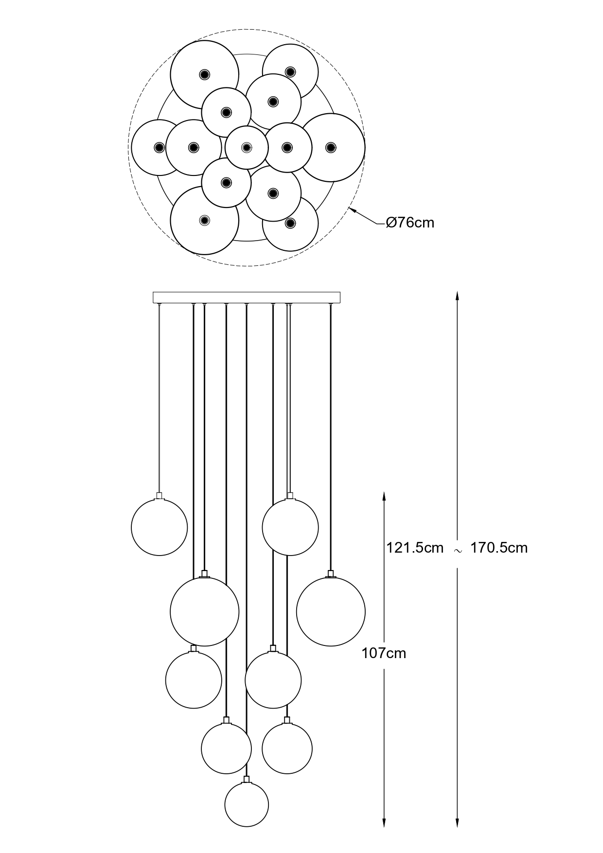 Wymiary 76 × 76 × 1215-1705 mm