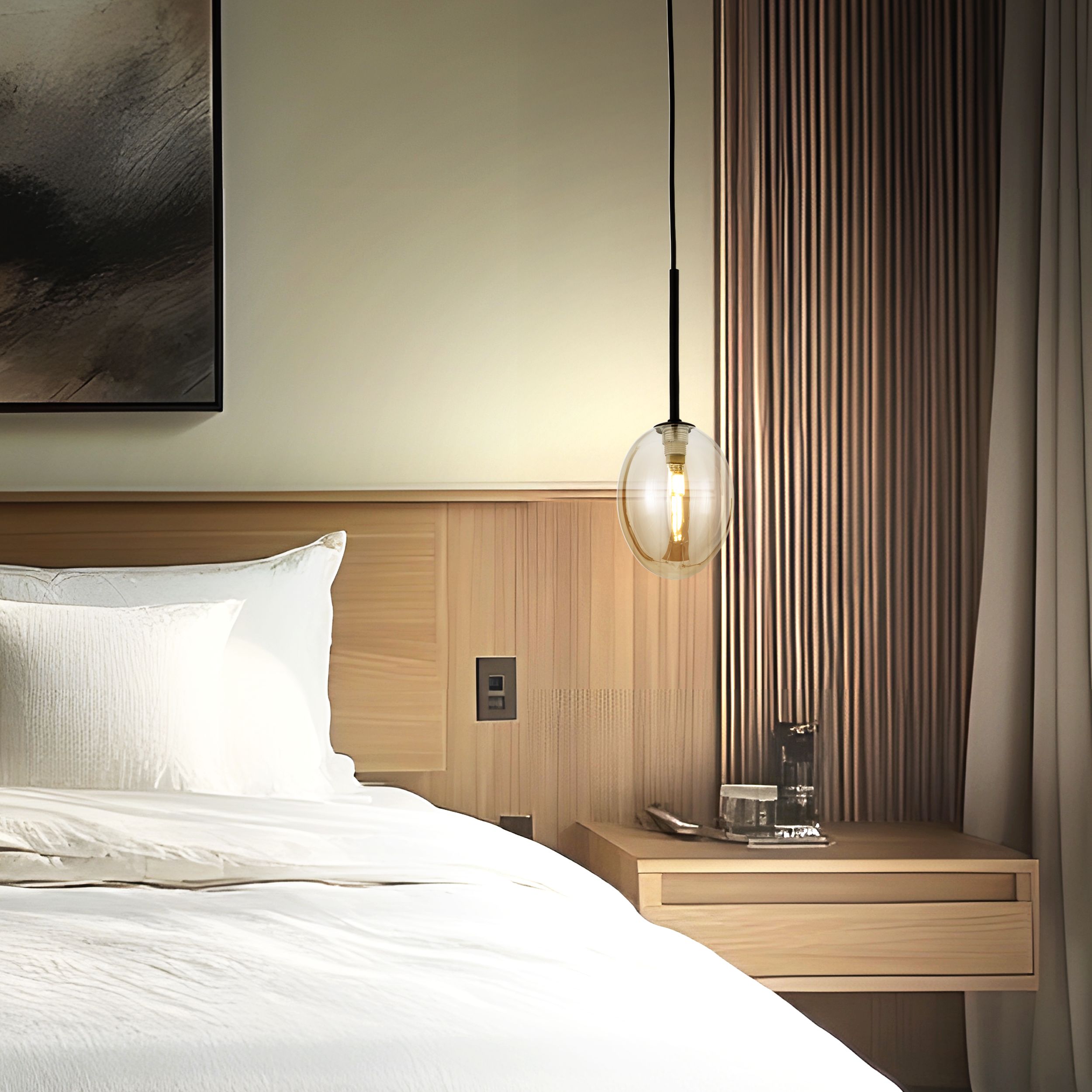 PEARL COGNAC to minimalistyczna lampa wisząca, która przyciąga wzrok subtelnym, bursztynowym szkłem o lekko transparentnym wykończeniu.