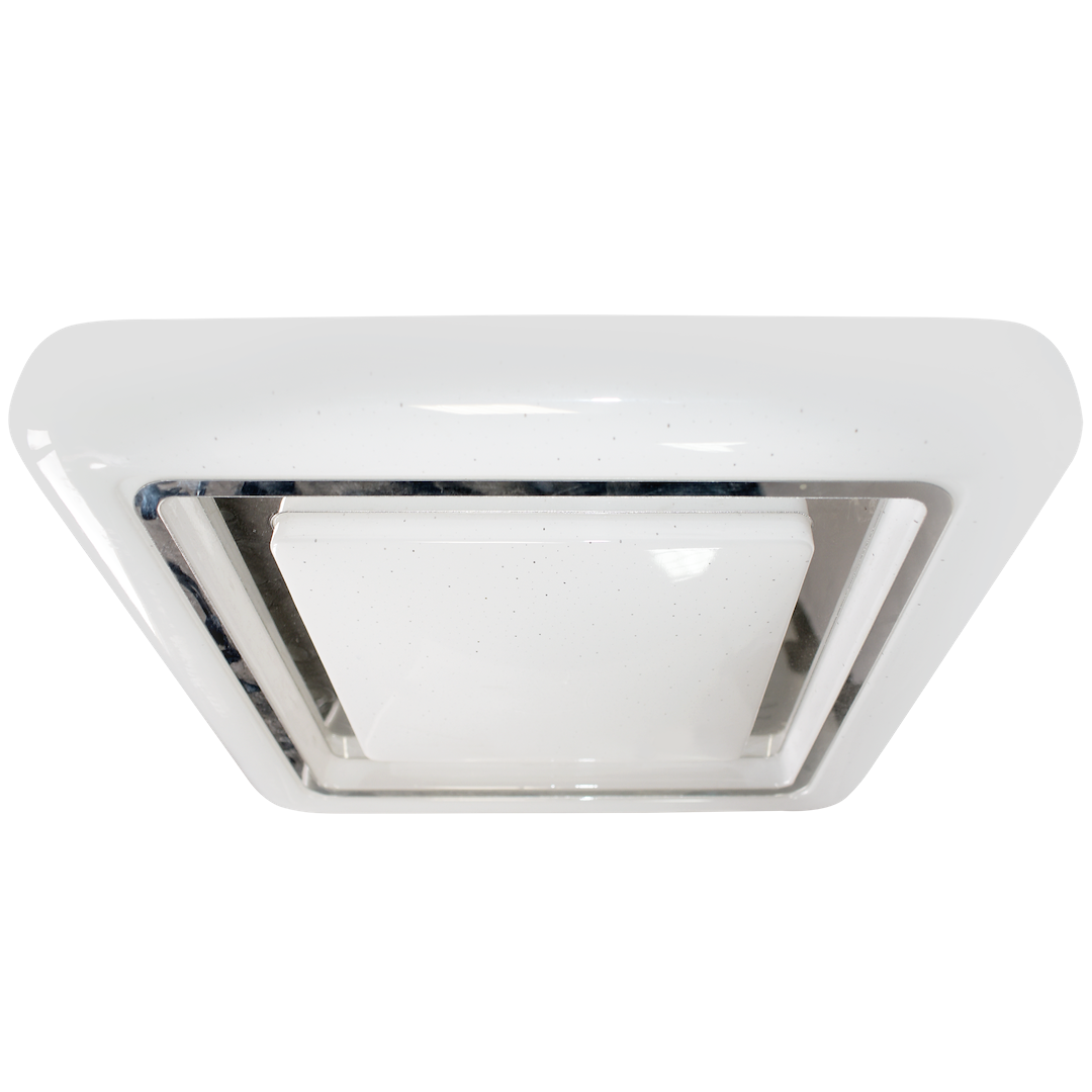 Minimalistyczny, a zarazem niezwykle elegancki wzór idealnie pasować będzie do nowoczesnych wnętrz. Kwadratowy kształt w połączeniu z subtelną kolorystyką doskonale komponować się będzie z białymi meblami, jednolitymi kolorami i gładkimi fakturami. Plafon z powodzeniem zamontować można w przestronnym salonie, a także w niewielkiej, jasnej sypialni. W tej ostatniej najlepiej zawiesić plafon tuż nad łóżkiem, ponieważ po włączeniu odpowiedniej funkcji lampa może zapewnić niemal magiczny efekt rozgwieżdżonego nieba.