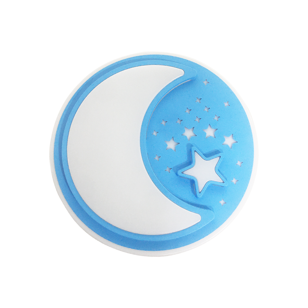 Plafon NOTTE zaprojektowany został z myślą o najmłodszych, dlatego też najlepiej sprawdzi się jako lampka nocna przy łóżku niemowlęcia lub przedszkolaka. Model ten występuje w trzech wariantach kolorystycznych: białym, różowym i niebieskim, dlatego bez trudu można dopasować go do stylistyki każdego pokoju dziecięcego. Szczególnie efektownie będzie prezentował się na ścianie lub suficie, ozdobionym motywem chmur. Model ten sprawdzi się zarówno w pokoju malucha, jak i przedszkolu.