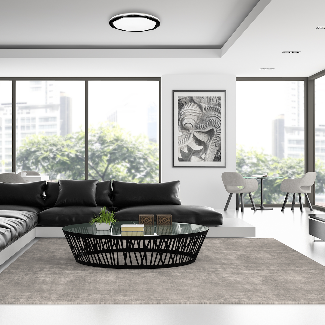 Plafon OPTIMA to nowoczesna lampa sufitowa o ciekawej, geometrycznej formie. Jej obudowa jest okrągła, ale już osłona źródła światła ma kształt wielościanu. Uzupełnieniem designu tej lampy są efektowne zdobienia na obudowie. Ten model jest dostępny w czarnym kolorze, z białym wypełnieniem. Taka barwa doskonale współgra z szarością czy bielą uzupełniając wnętrza o nowoczesnym, ale jednocześnie minimalistycznym wystroju.