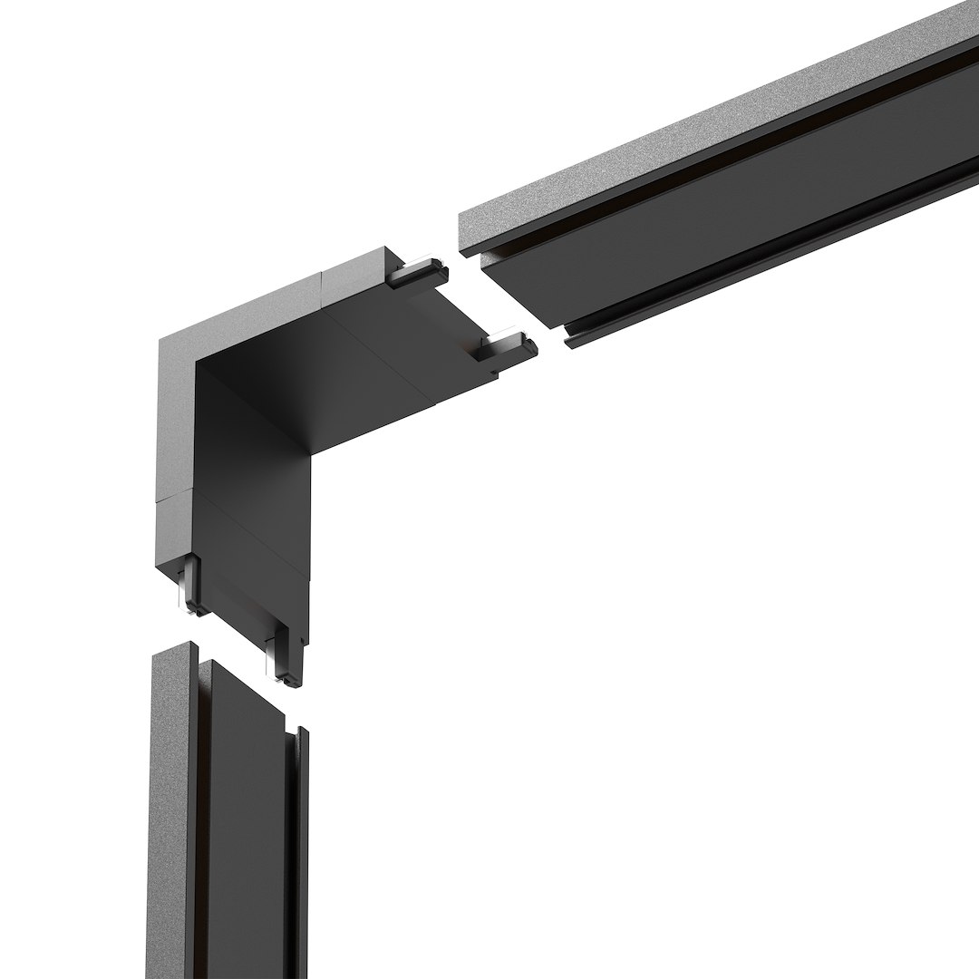 Czarny narożnik w kształcie litery L to element pozwalający na estetyczne i funkcjonalne prowadzenie szyny Slim Magnetic Track w narożnikach pomieszczeń. Dzięki precyzyjnemu wykonaniu i kompatybilności z całą serią system zachowuje ciągłość zasilania oraz stabilność montażu. Rozwiązanie to sprawdza się w salonach, biurach czy showroomach, gdzie wymagane jest elastyczne dopasowanie oświetlenia do układu architektonicznego.