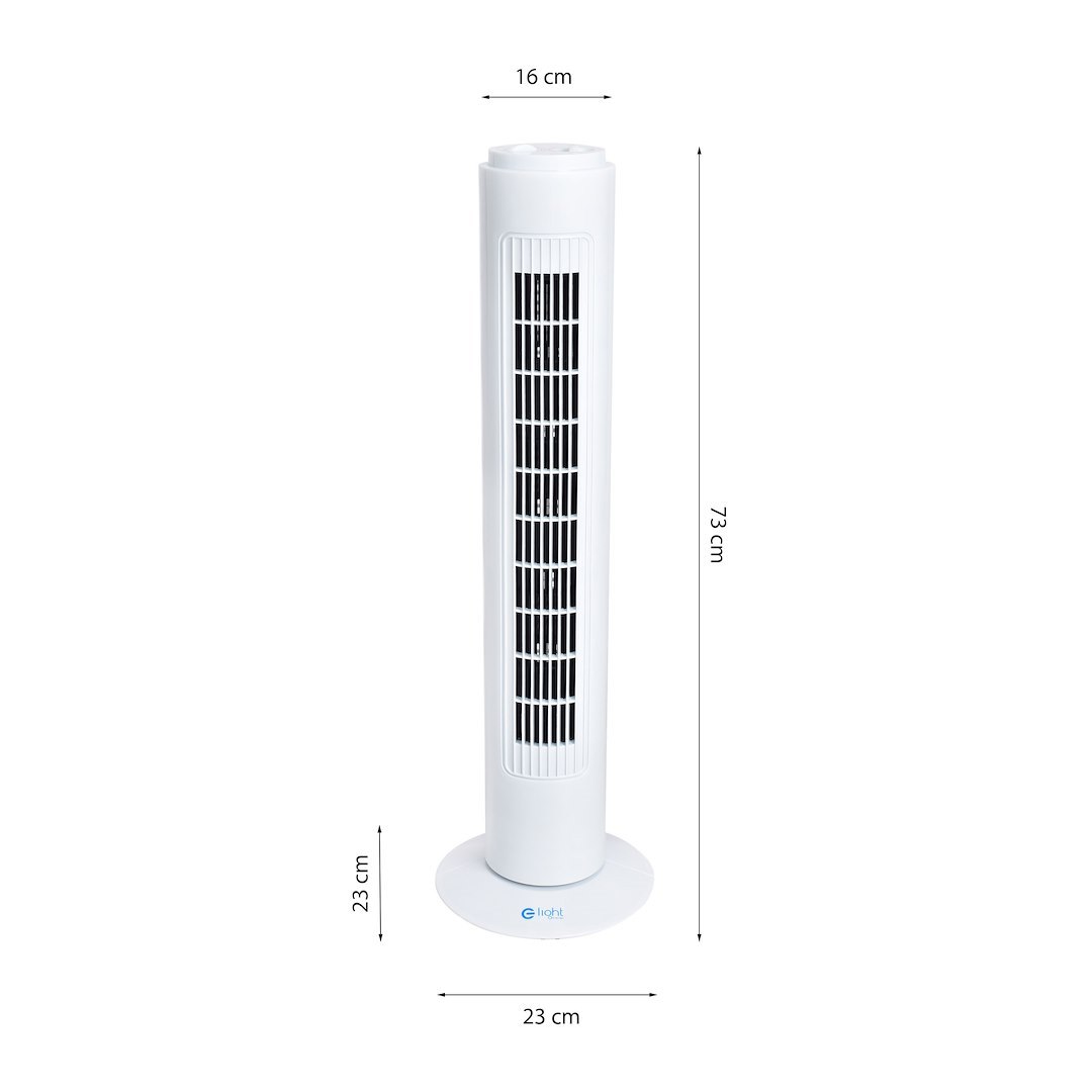 Najpopularniejszy rodzaj wiatraka domowego to oczywiście wentylator stojący. Takie urządzenie jest niezwykle proste w obsłudze, nie wymaga skomplikowanego montażu, a co więcej zapewnia naprawdę doskonałą skuteczność . Wentylator stojący marki Eko-Light popularnie zwany wieżą, będzie ozdobą w domu lub w biurze. Wysokość wentylatora to 73 cm a szerokość 33 cm. Zapewnia nie tylko niezbędne odświeżenie ale również dobrze wygląda. Siła (50W) odgrywa ważną rolę w gorące dni, gwarantowany przepływ powietrza 6000m/h. Jego najważniejszą funkcją jest możliwość wykonywania skrętów. Dzięki temu wiatr rozprowadzany może być równomiernie po całym pomieszczeniu. Masywne stopka zapewnia stabilność ustawienia.